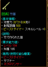 1秒↓のもの無いかなと思って露店を巡っておりましたら、今持ってる調教師竹笛の団長版が…!!